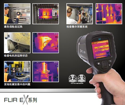 FLIR红外热像仪通过不同的斑斓色彩诠释温度定义,颜色的美妙跳跃使喜爱缤纷色彩的你可以更具效率的执行工作,透过FLIR E8液晶屏画面中红色与蓝色的美妙变幻,你可以通过FLIR E8即瞄即拍这种如数码相机般便捷的使用方式,通过迅速判断被摄物表面精准温度的方式判断及监控其工作状态。FLIR E8红外热像仪在全球范围内被广泛用于建筑检查、电气检查和机械检查等领域,您只需瞄准被监控对象,温度状态与故障位置立现眼前,FLIR Ex系列红外热像仪对于平屋顶裂缝,检查地板采暖,检查熔断器内部损伤检查电器柜,检查轴承,空气渗透检测、隔热问题等等工作手到擒来,如同一只敏感的猎豹,精准的嗅出热能量走向。