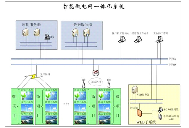 智能微电网一体化系统面向微电网监视、控制、分析、运行、决策和管理,为用户提供多能源分布式一体化解决方案,系统遵循IEC国际标准,基于Windows/Unix混合平台架构,集成调度自动化、配网自动化、智能变电站、集控站、GIS地理信息等应用和分析功能,能够为含有风电、光伏、水力、热能等分布式发电的微电网提供监视与控制功能。智能微电网一体化系统可以根据当前微电网系统运行情况与外界应用请求来指定相应的优化控制策略,能够实现自我控制、保护和管理,既可以与大电网并网运行,也可以孤立运行,使分布式电源和储能系统得到最大利用,充分发挥微电网清洁高效、供电可靠的优势。