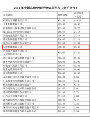 中国电力电工网讯:12月12日,中国品牌建设促进会和中央电视台联合举办了2014年中国品牌价值评价信息发布会。本次评价范围涵盖了制造业、农业、服务业三大产业,有能以18亿元品牌价值位居制造业类电子电气行业前列。