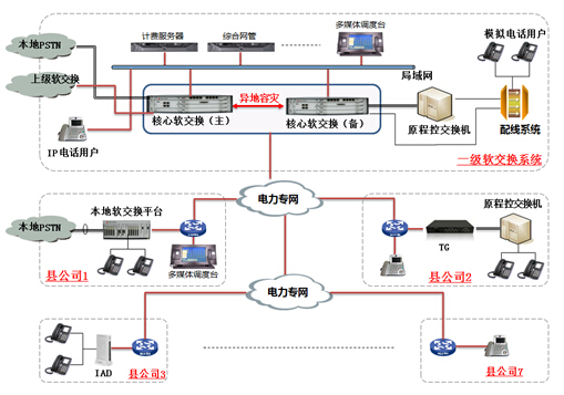 据此,大唐移动依托自身NGN技术及IMS技术在公网上大规模应用的成功经验,针对电力软交换及调度交换网的现状和需求深入分析,推出电力软交换及调度系统解决方案。其主要设计思想是业务与控制分离、承载与接入分离,把传统交换机功能实体离散分布在网络中,可以同时向用户提供语音、数据、视频等业务,并实现网关接入功能、呼叫控制和处理功能、业务提供功能、互通功能、操作维护功能、接入认证与授权、地址解析和带宽管理功能以及计费等功能。