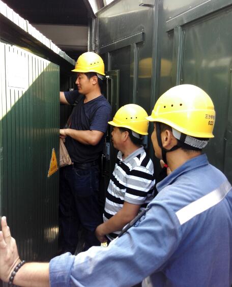 4月9日,北京双杰电气股份有限公司(以下简称:双杰电气)售后服务人员与三沙市供电局领导、专家一同对已投运三年的4台固体绝缘开关柜进行了例行巡检。