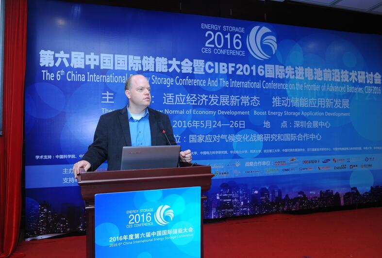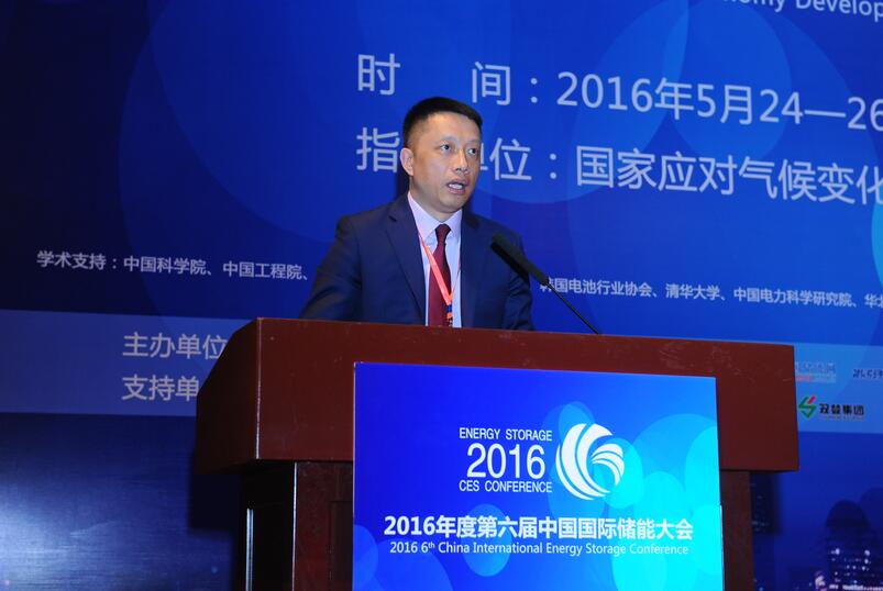 浙江南都电源动力股份有限公司总裁陈博在演讲中指出,“洁能+储能+智能”是未来能源互联网的发展方向,储能是实现能源互联、双向流动、电网柔性的一个至关重要的环节。中国储能商用化面临几大挑战:储能成本偏高、电力交易市场不健全、储能技术路线不成熟、缺乏储能价格激励政策。随着铅炭电池技术的发展和推广,铅炭储能在未来储能应用行业将大有作为。2016年第II代能量型铅炭已量产,性能为≥6000次@50%DOD,第III代能量型铅炭正在研发,预计到2020年推向市场,性能达到≥5000次@80%DOD。南都电源铅炭电池储能示范应用在中国投运项目有45个,投运装机容量为150MWh,待建项目7个,容量108.64MWh。由于我国储能处于发展初期,希望政府给予价格激励补贴优惠(如减税、初装补贴和电价补贴等);制定储能产业中长期发展规划;配套的管理规则和技术标准、贷款优惠和税收减免等,幵明确储能产业利益分配机制,鼓励发电商、电网公司、用户端和第三方储能企业等投资主体共同投资储能产业。2016年将是中国储能商用化的元年。