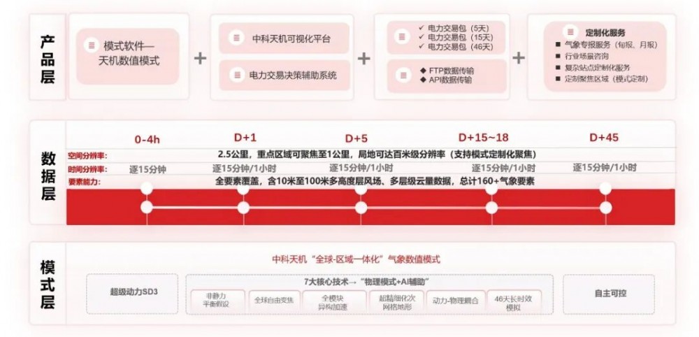 在这个“气象博弈”的赛场上,交易员和场站管理者需要的是真正贴合业务需求、可解释、高精度的气象决策底座。中科天机深耕气象科学,依托强大的国产异构算力与自主研发的物理模式,为电力交易市场提供了一套“算得准、要素全、时效长、可定制”的综合解决方案。